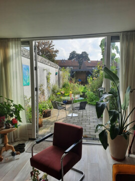 - Grote woonkamer, open keuken met openslaande deuren naar de tuin.